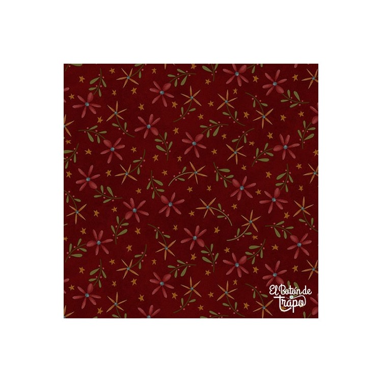 Franela para Patchwork de color granate con estampado de flores de la Colección Folk Art Flannel 2