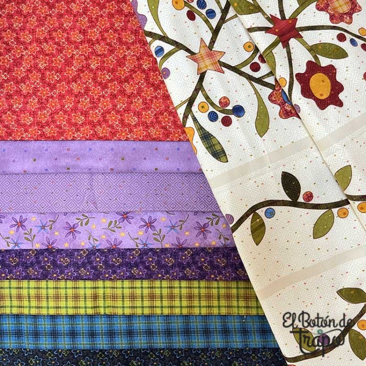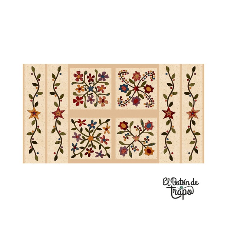 Pack compuesto por 1 Panel y 8 franelas combinadas de 45cm (cada una) de la Colección Folk Art Fannel 2 diseñada por Janet Rae Nesbitt.