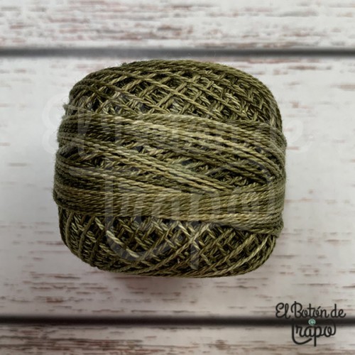 Hilo Valdani Perlé No.12 color O519 Green Olives matizado en tonos verdes.