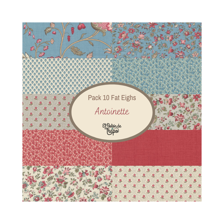 Pack (Bundle) de telas patchwork compuesto por 10 Fat Eights combinados de la Colección Antoinette diseñada por French General
