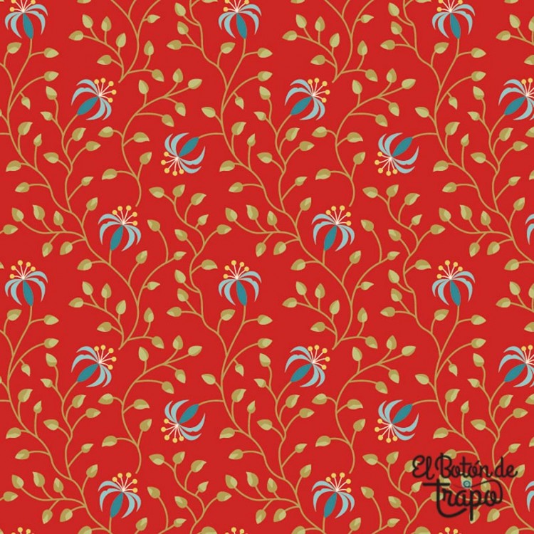 Tela Patchwork roja de la Colección Beyond Time de EQP Textiles. Tela recomendada por EQP para su Mistery Gratuito 2024.