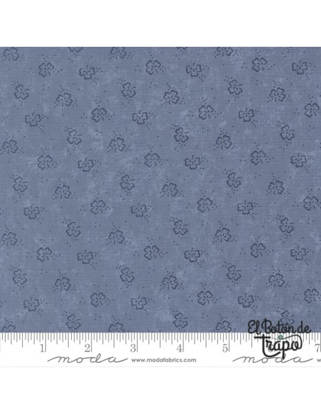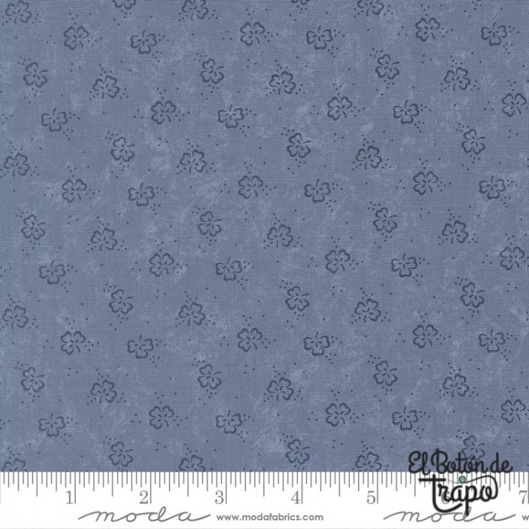 Tela de algodón premium en un tono azul suave con un patrón de tréboles en azul oscuro. Perfecta para proyectos de quilting, patchwork en tonos azules y combinaciones con el resto de la colección Bluebird’s Nest.
