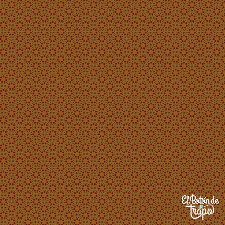 Tela de patchwork Cotton Thimble Miniatures de Marcus Fabrics realizada en algodón 100% de alta calidad, con estampado miniatura floral en tonos rojos sobre fondo dorado. Su diseño clásico y delicado es ideal para proyectos de patchwork, quilting, apliqué y costura creativa, especialmente en trabajos que requieren estampados pequeños y bien definidos.