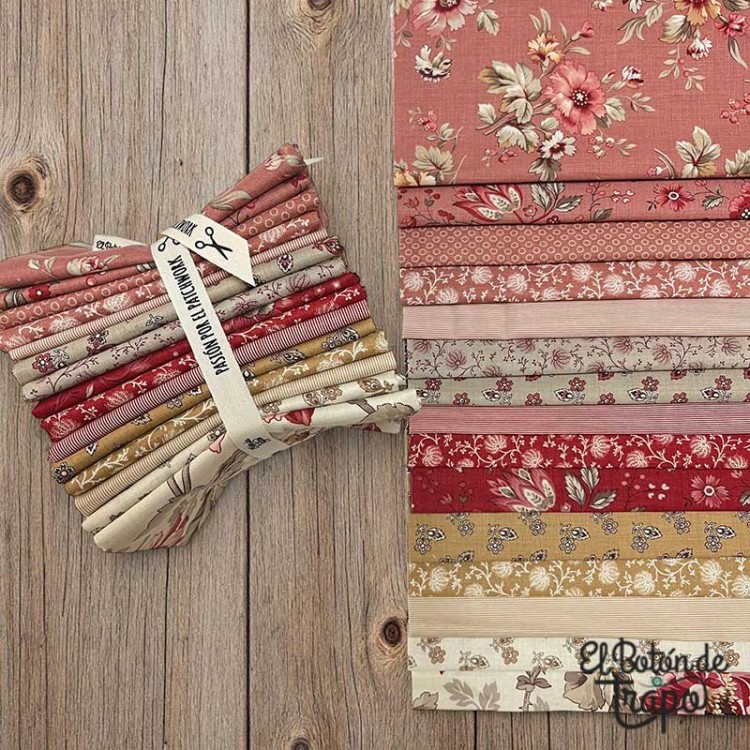 Pack (Bundle) de telas patchwork compuesto por 15 Fat Quarters combinados de la Colección Joie de Vivre diseñada por French General