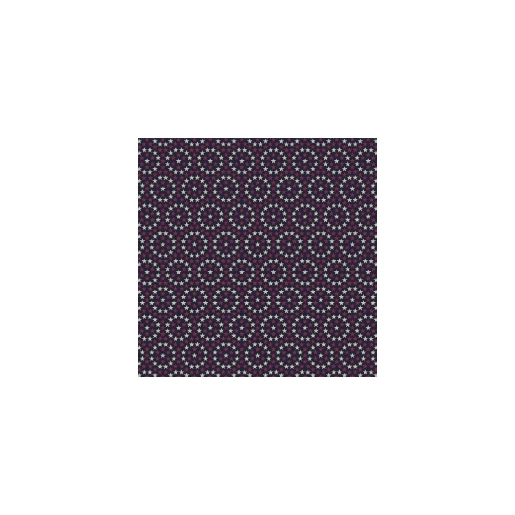 Tela con estampado de estrellas beige y granate sobre fondo azul.