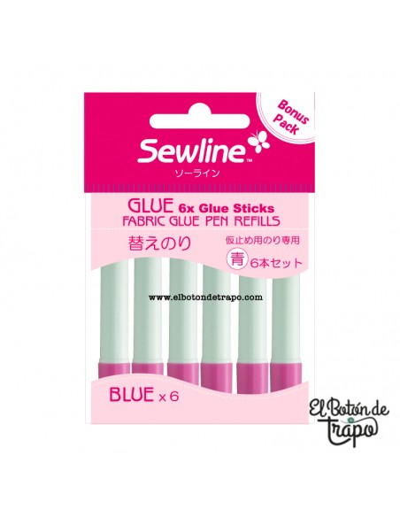 Paquete de 6 repuestos de pegamento para Barra de Pegamento para Tela Sewline, en color azul.