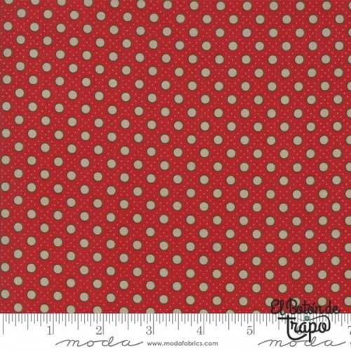 Tela Patchwork estampada con topos tostados sobre fondo rojo de la Colección Petites Maisons de Moda Fabrics.