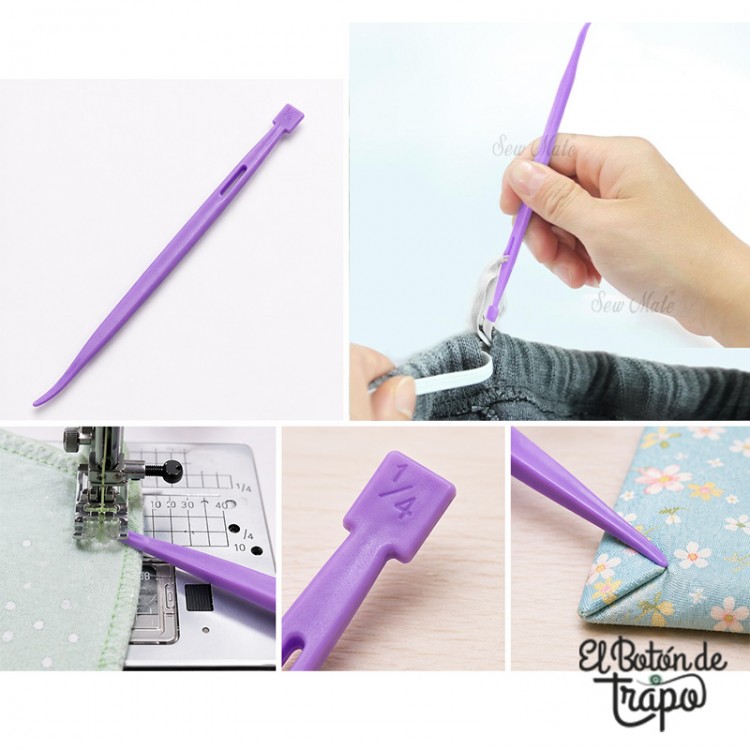 La herramienta para esquinas y pasa cintas es un accesorio imprescindible para costura, patchwork y manualidades. Diseñada para ofrecer precisión y comodidad, permite formar esquinas perfectas en tus proyectos sin dañar la tela, logrando acabados profesionales en todo momento.