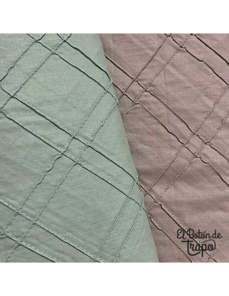 Tela para Patchwork color agua con textura que crea un efecto de rombos y suave tacto.