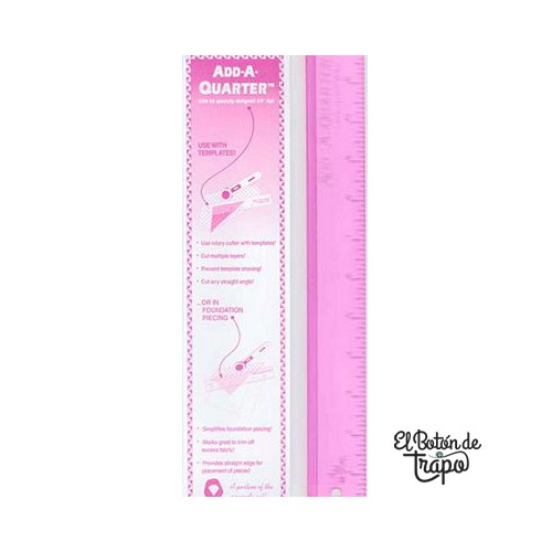 Con la regla "Add-a-quarter" podrás añadir automáticamente un margen de costura de 1/4 de pulgada a cualquier ángulo recto, tiene un borde recto.