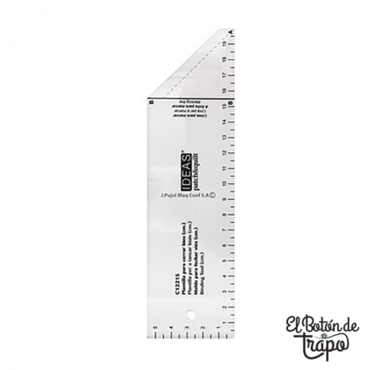 Plantilla en centímetros diseñada especialmente para cerrar bies en proyectos de patchwork y costura creativa. Esta herramienta facilita cortes precisos y alineados, permitiendo obtener uniones limpias y profesionales con mayor rapidez. Ideal tanto para principiantes como para personas con experiencia, aporta comodidad, exactitud y un acabado impecable en cada trabajo. Un accesorio práctico que mejora la calidad y eficiencia en tus creaciones textiles.