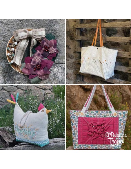 11 Proyectos con patrones a tamaño real y explicados paso a paso. Aprende a confeccionar bolsas,monederos, quilts, coronas navideñas y una funda de máquina entre otros.