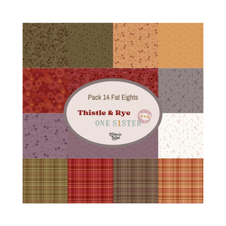 Pack (Bundle) de telas patchwork compuesto por 14 Fat Eights de la Colección Thistle Rye, diseñada por One Sister Designs para Henrry Glass.