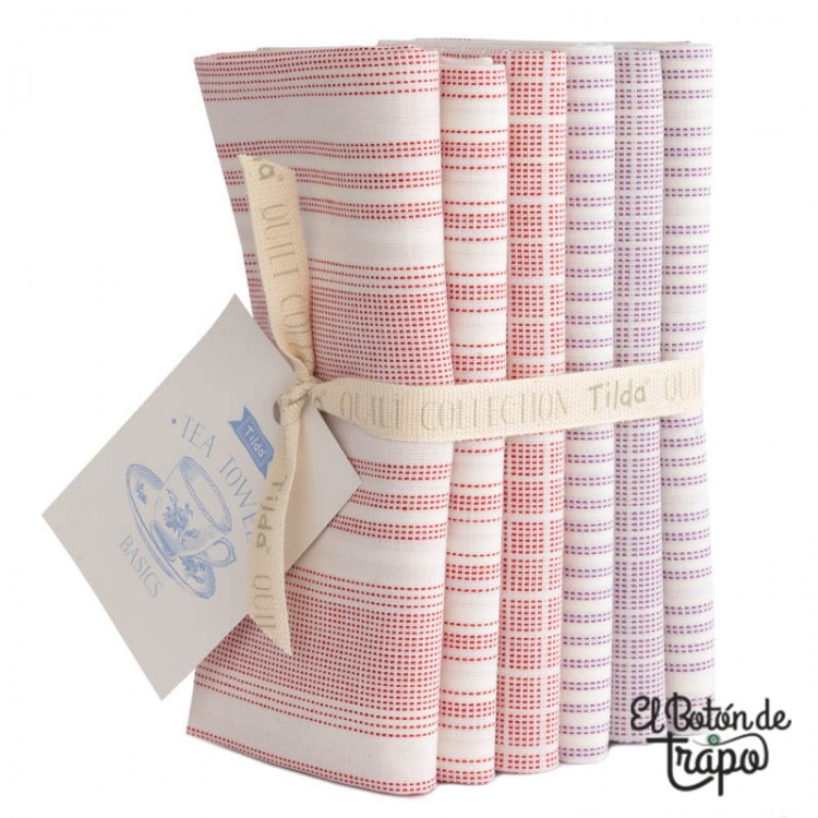 Pack 6 Fat Quarters Tilda Woven Tea Towel Red/Plum