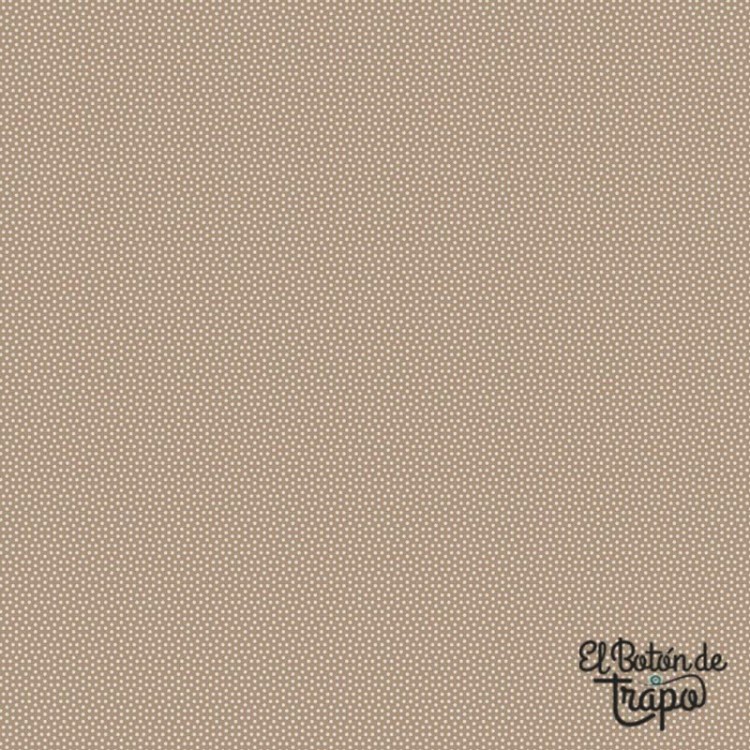 Tela de la colección Poppy Seed Basics de Tilda, con delicado estampado de pequeños puntos sobre fondo en tono gris topo.